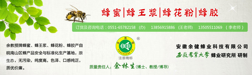 安徽余健蜂業科技有限公司、潛山官莊余灣蜜蜂養殖專業合作社是以安徽農業大學蜂業研究所為技術依托專業從事蜂產品生產、銷售的全資公司與合作社。安徽農業大學蜂業研究所是安徽省唯一從事蜂業科學研究與開發機構,以提高我省養蜂業經濟和社會效益,推動養蜂科學技術現代化為目標,并開展應用基礎研究和探索新技術在蜂業科學上的應用。安徽農業大學蜂業研究所專家云集、人才薈萃、設備精良。安徽余健蜂業科技有限公司、潛山官莊余灣蜜蜂養殖專業合作社依托安徽農業大學蜂業研究所最先進的科技成果,對原料及成品質量嚴格把關;自主研發“余教授”牌蜂蜜、蜂王漿、蜂花粉、蜂膠、蜂巢素等系列蜂產品。安徽余健蜂業科技有限公司、潛山官莊余灣蜜蜂養殖專業合作社在皖南山區、皖西大別山區建立了無公害蜂產品原料生產基地。合作社與公司依托安徽農業大學蜂業研究所雄厚的研發實力,先進的儀器與高水平的檢測技術,管理規范的原料生產基地以及設備一流的現代化蜂產品加工廠,為生產高品質的“余教授”牌系列蜂產品提供可靠保障。
